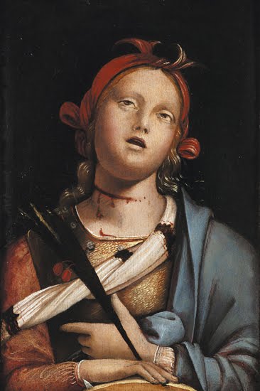 Mais le martyre peut être suggéré de plusieurs façons en focalisant l’attention sur le cou dans le cas de « portraits » de la sainte :